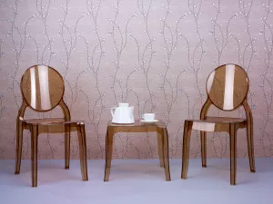 Пластиковый прозрачный стул изготовлен из прозрачного поликарбоната Makrolon® - чрезвычайно прочного, легкого материала со стеклянной прозрачностью и устойчивостью к ударам даже при низких температурах. Благодаря отсутствию металлического каркаса и устойчивости к ультрафиолетовому воздействию стулья из пластика можно использовать в том числе и на открытых площадках.