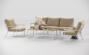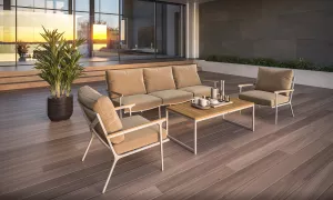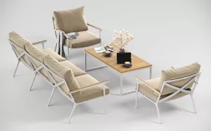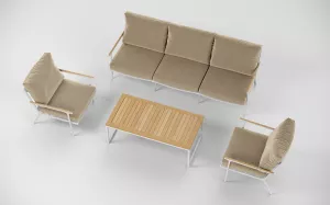 Белая мягкая лаунж зона для террасы тик/алюминий