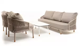 Бежевая лаунж-зона 5-местная плетеная мебель из роупа