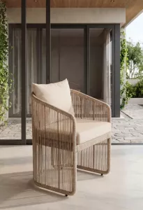 Редкое плетение превращает ротанг в подобие музыкальных струн они опутывают мебель, создавая игру света, тени и воздуха. Диван на троих, стул, кресло, кофейный столик и пуф складываются в изысканную композицию для тех, кто ценит дизайн с характером. Это мебель-настроение. Она будто дышит вместе с вами, дарит прохладу в зной и встречает первые капли дождя, не боясь непогоды. Плетеная мебель для частных садов и премиальных террас, где форма обретает содержание.