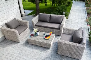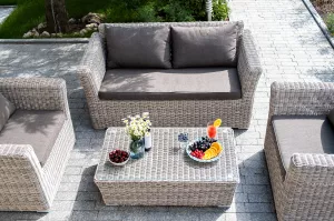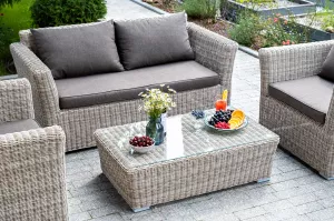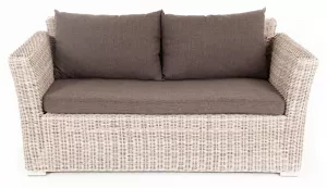 Диван из искусственного ротанга подходит для удобного размещения двух персон. Он имеет алюминиевый каркас, который выдерживает высокие нагрузки.
