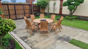 За столом диаметром 180 см комфортно разместится 8-9 человек.