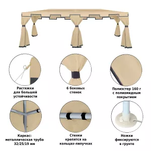 Большой шатер 3х6 для дачи из полиэстера практичное и популярное решение для использования на даче, пикниках, шашлыках и кемпинге. Крыша тента защитит от солнца. Тент садовый из полиэстера быстро и несложно монтируется и закрепляется с помощью растяжек.