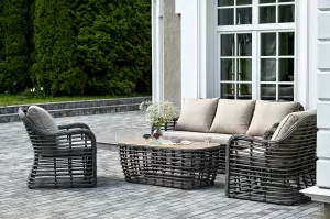 Дачная лаунж-зона из искусственного ротанга, цвет серый