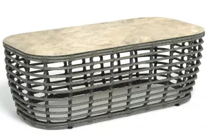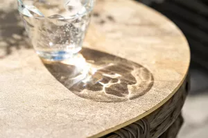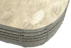 Журнальный столик выполнен из алюминия, вручную оплетенного круглым искусственным ротангом. Столешница из закаленного стекла толщиной 5 мм. Благодаря износостойким материалам, стол пригоден для использования на улице при любой погоде и не требует специальных условий хранения.