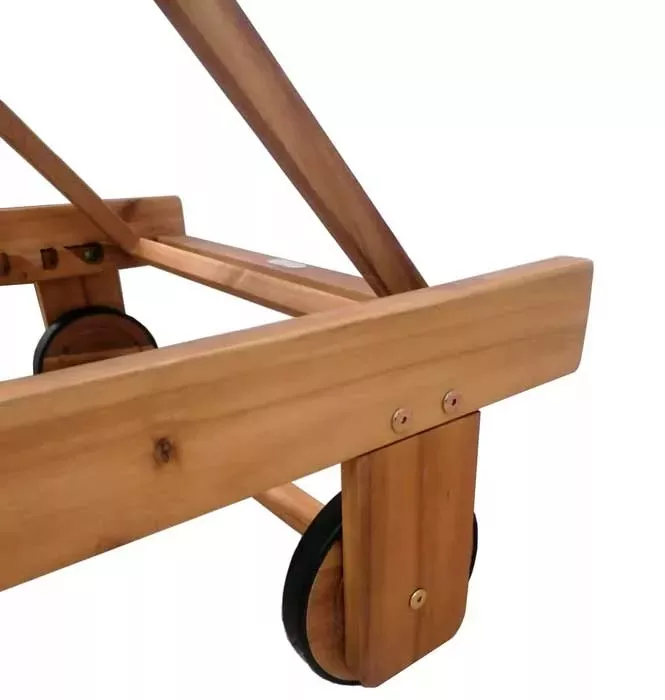 Деревянный лежак из акации на колесах с выдвижным столиком