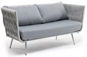 Диван 2-местный плетеный из роупа, светло-серый 40 мм