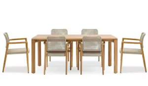 Коллекция из тикового дерева - это дань мастерству и вневременному дизайну. Каждое изделие изготавливается с особым вниманием к деталям, от плетеных вручную спинок до прочных ножек из тикового дерева. В качестве комплекта сохраняет изысканную эстетику в спокойной обстановке.