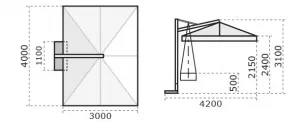 - Купол выполнен из акрила 350 г/мІ с пропиткой. Варианты цвета: слоновая кость (A1), терракота (T2), бордовый (T3), серо-коричневый (T6), белый (T7), серебристо-серый (T8), антрацит (T9), черный (S1). Цена на сайте указана для зонта с куполом в цвете слоновая кость (A1) без волана.