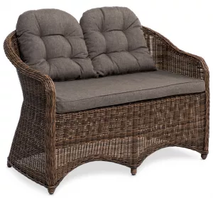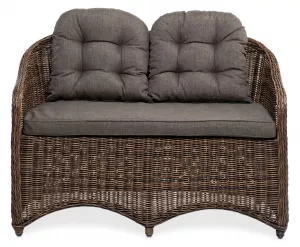 Садовый двухместный диван из искусственного ротанга с подушками в комплекте.