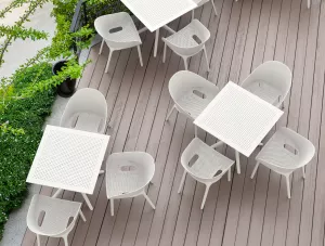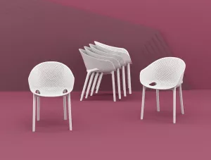 Пластиковые кресла серии с перфорированными сиденьем и спинкой станут отличным выбором для обстановки фуд-кортов, кафе, ресторанов и баров. Благодаря использованию высококачественных материалов, они долгое время не теряют своего привлекательного внешнего вида, даже несмотря на активную эксплуатацию. Отсутствие металлического каркаса и устойчивость к ультрафиолетовому воздействию обеспечивают использование пластиковых кресел на открытых площадках.