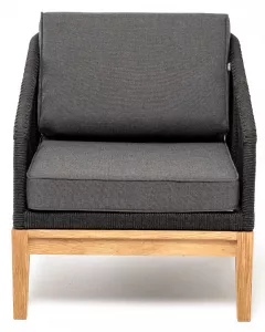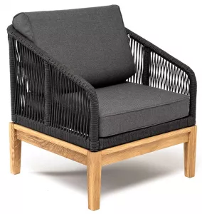 Кресло плетеное из роупа, основание дуб, темно-серый