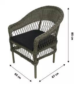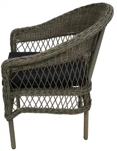 Кресло плетеное серое, подушка темно-серая
