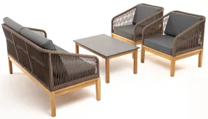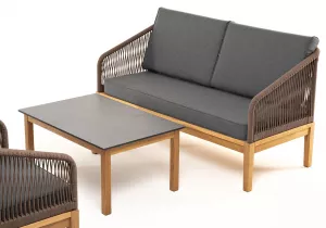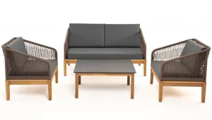 Лаунж-зона 4-местная из дуба и роуп коричневый