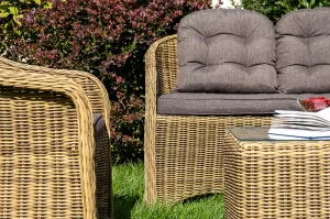 Комплект для лаунж-зоны из искусственного ротанга рассчитан на 4 персоны.