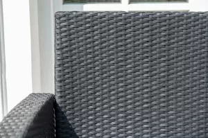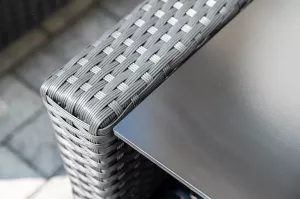В основе мебели - стальной каркас и плоский искусственный ротанг. Каркас оплетен с помощью ручного метода и представлен в черном цвете.
