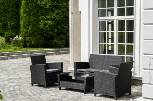 Лаунж-зона из искусственного ротанга мебель на 4 персоны черная