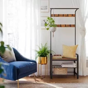 С помощью этой великолепной вешалки вы сможете избавиться от беспорядка в прихожей; сочетание четких линий и стиля лофт придаст ей современный и элегантный шарм. Это обувница, скамейка и вешалка в одном флаконе. Эта вешалка для обуви приглашает гостя почувствовать себя как дома