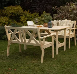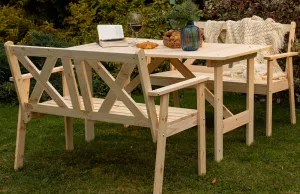 Готовность к преображению: Все элементы комплекта поставляются в необработанном виде, что дает вам полную свободу творчества. Отшлифованная поверхность дерева идеально подготовлена под покраску, лакировку или нанесение защитных составов. Вы сможете придать мебели любой желаемый оттенок, идеально вписав ее в существующий интерьер или ландшафтный дизайн.