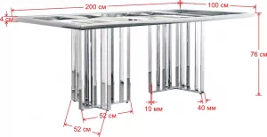 Подстолье из полированной нержавеющей стали (зеркальное). Лаковое покрытие. Рекомендуемый размер столешницы: 250х150 см. Характеристики