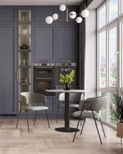 Стильный кухонный стул с оригинальной формой спинки. В качестве обивки используется мягкий велюр, износостойкий, гигроскопичный материал с приятной на ощупь бархатистой фактурой. Металлический каркас в черном цвете огибает спинку и выступает аккуратным акцентом модели. Широкое сиденье обеспечивает удобную посадку и уют.