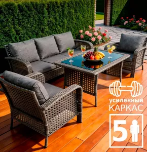Комплект плетеной садовой мебели из искусственного ротанга - отличный выбор для того, чтобы отдыхать на свежем воздухе с комфортом.
