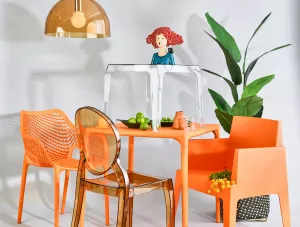 Пластиковые кресла для дачи, оранжевые, штабелируются