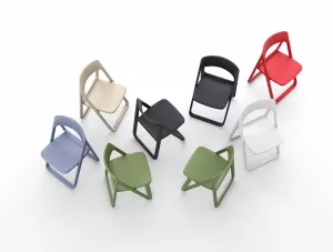 Складной стул изготавливается из полипропилена, упрочненного стекловолокном, полученным с использованием новейшего поколения технологий формования пластмасс под давлением. Отсутствие металлического каркаса и устойчивость к ультрафиолетовому воздействию обеспечивают использование пластиковых стульев в том числе и на открытых площадках.