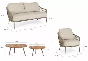 Комплект плетеной лаунж мебели - это современная комбинация мебели интересной формы и приятного цвета, благодаря которому она оживит любое пространство, в котором находится. Комплект привлекает внимание и станет прекрасным дополнением гостиной зоны на открытом пространстве. Каркас изготовлен из стали и имеет мягкие подушки на сиденье и спинке. Подлокотники и продуманная конструкция гарантируют комфорт во время использования. Плетеный корпус придает дивану и креслам удивительный характер. Ножки обеспечивают хорошую устойчивость.