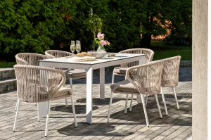 Обеденная группа предназначена для комфортного размещения 6 персон и станет отличным дополнением к вашей территории для проведения трапезы с друзьями или семьей. Комплект из стола и 6 стульев выполнен в едином стиле, комбинируя качественные материалы и современный дизайн.