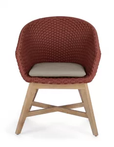 Плетеное кресло из тика и роуп цвет алый. Купить!