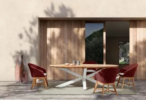 Плетеное обеденное кресло станет комфортным украшением обеденной зоны на террасе загородного дома или летней площадке.