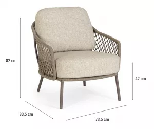 Лаунж кресло плетеное из роуп - это современный предмет мебели интересной формы и цвета, благодаря которому он оживит любое пространство, в котором находится. Кресло привлекает внимание и станет прекрасным дополнением гостиной зоны на открытом пространстве. Оно изготовлено из стали и имеет мягкие подушки на сиденье и спинке. Подлокотники и продуманная конструкция гарантируют комфорт во время использования. Плетеный корпус придает креслу удивительный характер. Ножки обеспечивают хорошую устойчивость.