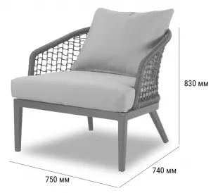 Комфортное кресло с алюминиевым каркасом и стильным плетением из роупа - идеальное сочетание прочности и уюта. Мягкие подушки из износостойкой ткани обеспечивают максимальный комфорт при отдыхе. Современный дизайн делает кресло универсальным элементом для интерьера и уличных пространств. Идеально подойдет для отдыха на террасе, балконе, в саду или гостиной. Отлично сочетается с кофейным столиком из той же коллекции.