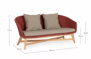 Плетеный диван тиковый с подушками, алый