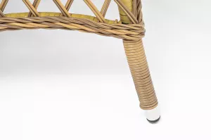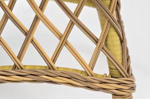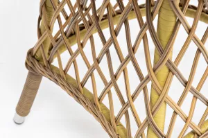 Каркас изготовлен из прочного и очень легкого алюминия. Вручную оплетен синтетическим ротангом натурального соломенного оттенка.