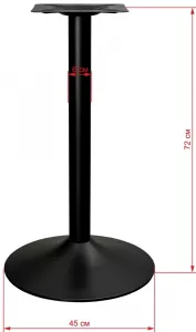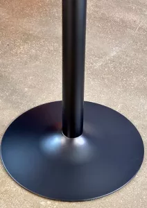 Подстолье металлическое. Труба и основание-черное матовое (порошковое напыление). Основание "рюмочкой". Рекомендуемый размер столешницы: 60, 60х60. Характеристики