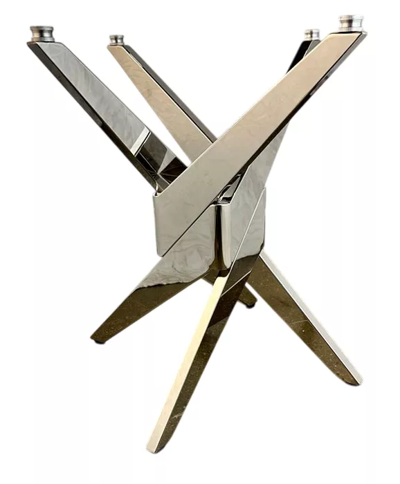 Подстолье для журнального стола из полированной нержавеющей стали (зеркальное). Лаковое покрытие. Рекомендуемый размер столешницы: D80, 70х70 см. Характеристики