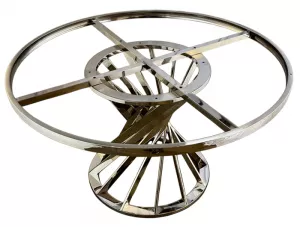 Подстолье из полированной нержавеющей стали (зеркальное). Лаковое покрытие. Рекомендуемый размер столешницы: D 150 см. Характеристики