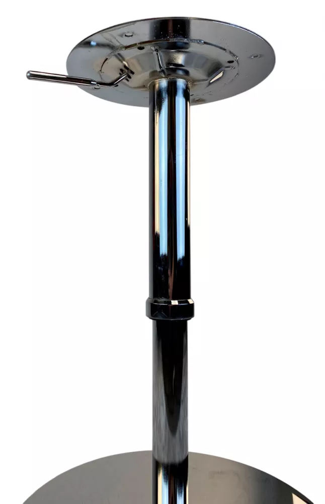 Подстолье хромированное с регулировкой высоты. Размер верхнего крепления: D30 см. Рекомендуемый размер столешницы: D-80, 80х80 Характеристики