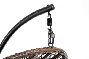 Уютное садовое подвесное кресло-кокон для организации лаунж-зоны. Основание изготовлено из стали окрашенного порошковой износостойкой краской черного оттенка, вручную оплетенного плоским искусственным ротангом коричневого цвета. Этот материал не боится перепадов температуры, прямых солнечных лучей, дождя и ветра.