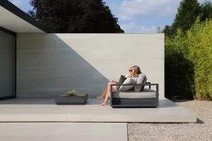 Поднимите круглую спинку и переверните ее. Подушки смещаются вместе с ней, мгновенно создавая более глубокое и удобное сиденье идеальное для чтения, непринужденной беседы или кофе у бассейна.