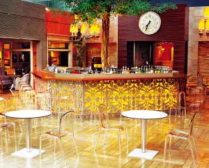 Пластиковые прозрачные барные табуреты серии станут отличным выбором для обстановки фуд-кортов, кафе, ресторанов и баров. Благодаря использованию высококачественных материалов они долгое время не теряют своего привлекательного внешнего вида, даже несмотря на активную эксплуатацию.