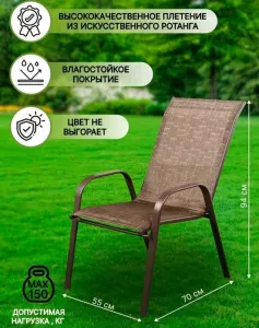 - Прочность и долговечность: Металлический каркас стола и стульев обеспечивает стойкость к атмосферным воздействиям, обеспечивая долгий срок службы мебели.