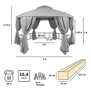 Садовый шатер 2х2 беседка, серый с москитной сеткой