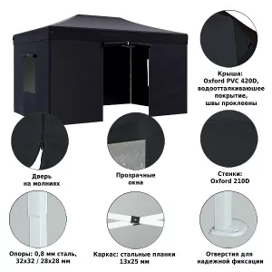 Садовый шатер 3х4,5 беседка быстросборная, черный