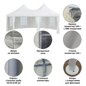 Материал: крыша - полиэстер 240 г с ПВХ покрытием, стенки - 140 г с окнами - ПВХ