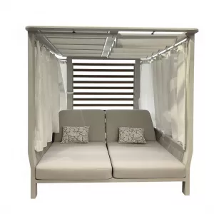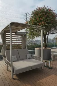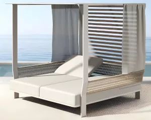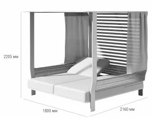 Двухместный лежак выделяется своей простотой и способностью улучшать пространство на свежем воздухе. Алюминиевая конструкция с порошковым покрытием, обивка из олефина для двойного сиденья, которое позволяет двум людям удобно лежать рядом друг с другом, чтобы загорать вдвоем! Идеальное сочетание материалов: тепло, исходящее от роупа с одной стороны, и прочность алюминия в конструкции с другой. Лежак для 2-х - это удачное дополнение к Вашему открытому пространству! Он отлично подходит для летних дней, для полуденного отдыха в тени и прохладе, для хорошего самочувствия и веселья с близкими, ведь с нем каждая деталь посвящена удовольствию.