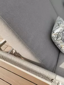 - Толщина матраса 150 мм. Для наполнения матраса используется специально разработанная для уличной мебели быстросохнущая пена. В отличие от обычной пены, быстросохнущие подушки из пены высыхают в мгновение ока. Даже если их замочить в воде, они будут защищены от плесени. Это связано с открытой ячеистой структурой, которая позволяет воде и воздуху легко проходить через материал. Еще одним преимуществом быстросохнущих поролоновых подушек является то, что их гораздо труднее испачкать, чем обычные поролоновые подушки.