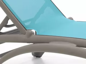 Тканевое покрытие шезлонгов - инновационный материал для улицы - текстилен. Текстилен - прочный высокотехнологичный полиэстер, который отлично подходит для использования на открытом воздухе. Ткань не выгорает даже под прямыми солнечными лучами, она не повреждается от воздействия влаги и может эксплуатироваться при любых погодных условиях. Текстилен не вызывает аллергии, не гниет и имеет высокую прочность на разрыв. Лежаки с текстиленом - идеальный вариант для пляжа и бассейна.